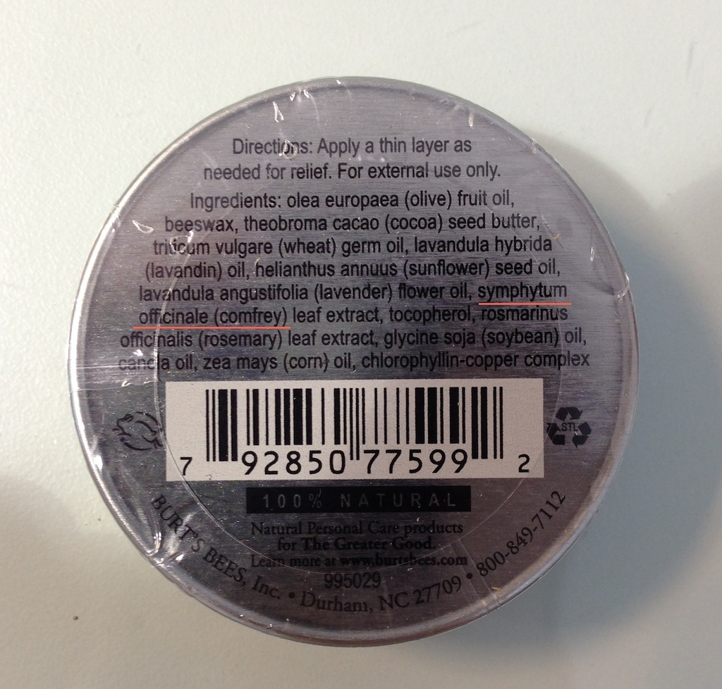 附帶一提,FDA在2001年7月發表建議聲明表示comfrey的製品因為引起肝靜脈栓塞,建議下架。